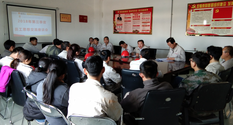 為了充分了解員工的思想動態(tài),征詢廣大職工意見和建議,幫助員工解決工作和生活中的實(shí)際困難,加強(qiáng)員工隊(duì)伍建設(shè),體現(xiàn)公司以人為本的管理理念,促進(jìn)企業(yè)更加健康、和諧發(fā)展,寧夏興昊永勝鹽業(yè)科技有限公司于10月10日組織召開了2018年第三季度員工思想交流座談會。會議由鹽業(yè)公司總經(jīng)理尚繼榮同志主持,鹽業(yè)公司黨支部副書記王志杰、綜合科科長張偉及職工代表列席參加會議。