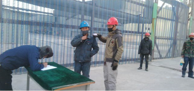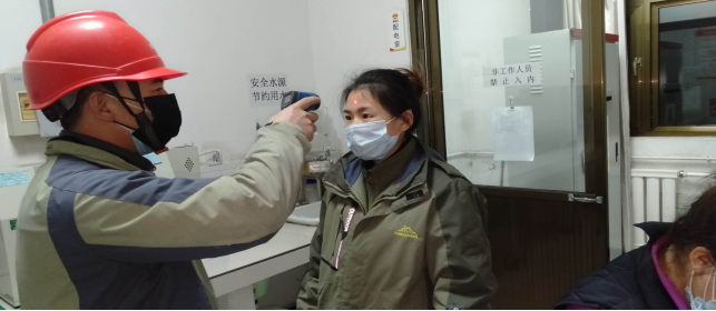 在公司北大門,他們對進出廠區職工及車輛登記,嚴格“疫情”防控工作。
