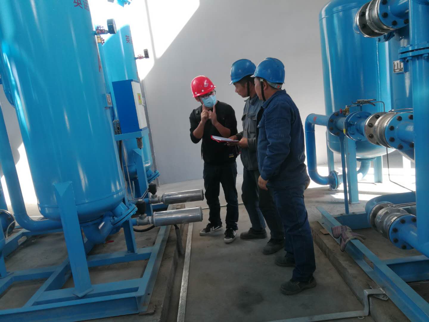 截止發稿前,空分制氮已經開機打壓試車,發現漏點及時消除后再次重復對后系統儲罐設備打壓試車。試壓的同時本公司維修人員積極向廠家技術人員請教空分制氮設備的常見故障及處理方法。