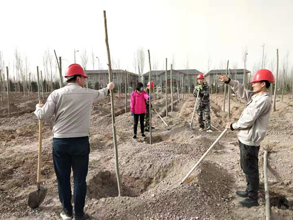 近日,經(jīng)過大家辛勤勞動(dòng)和團(tuán)結(jié)協(xié)作,一排排小樹開始在廠區(qū)內(nèi)幸福地沐浴陽光,吮吸春風(fēng)。