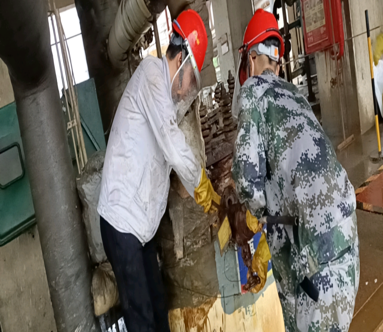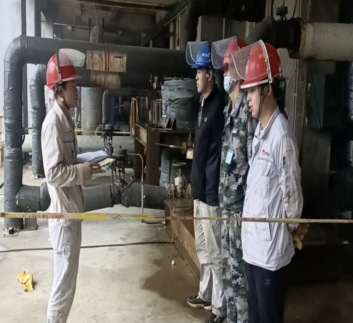 為了保證安全、優(yōu)質(zhì)、高效地完成任務(wù),在班長黃小龍的帶領(lǐng)下,進(jìn)行零脫析再沸器管線拆除安全技術(shù)交底,裝置工藝技術(shù)員張?zhí)烊适俏覀兊谋O(jiān)護(hù)人,除此之外,單位領(lǐng)導(dǎo)更是親自到檢修一線指導(dǎo)工作,把安全關(guān),把質(zhì)量關(guān),隨時(shí)協(xié)調(diào)處理現(xiàn)場遇到的問題。