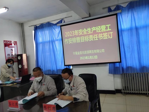 虎歲揚威興駿業 兔毫著彩繪宏圖。2023年1月12日14:00分,資源再生公司召開了2022年生產經營工作總結會、2023年度安全生產經營工作安排暨目標責任書簽訂。會議由公司副總經理雷銳同志主持,公司年薪團隊、職能科室長及專業負責人、裝置管理團隊和職工代表參加。