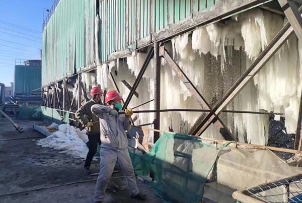 走進現(xiàn)場,我們看到的是工友們忙碌的身影,在嚴寒下,那一張張掛著“兩鬢斑白”和“爬滿灰塵”的臉龐;讓我們看到了他們對待檢修清冰作業(yè)精、專、細的工作態(tài)度。平時工作中他們沒有太多的言語,只是埋頭苦干,不敢有絲毫懈怠,也不能有半點疏忽。是我們最樸實無華的一線工友,也是大家常說的,最可愛的人,我們身為金昱元這個大家庭的成員,這是我們的義務和責任,工友們早已將“責任”二字深深地刻在檢修作業(yè)的每一個環(huán)節(jié)。為保證檢修清理作業(yè)質(zhì)量,他們沒有在寒冷面前選擇草草了事,依然一絲不茍的檢查著檢修清理工作的每處細節(jié),一雙雙沾滿油污被冰水打濕的衣袖,無不彰顯著一種敬業(yè)精神。清理檢修合格的設(shè)備,為了配合裝置的安全平穩(wěn)運行,為了現(xiàn)場設(shè)備冷卻塔填料的完好,為了循環(huán)水系統(tǒng)的正常降溫,為了現(xiàn)場工藝指標的合格,他們忘卻了勞累,忘卻了休息,用他們勤勞的雙手和吃苦耐勞的拼搏精神在檢修清理現(xiàn)場忙碌著。