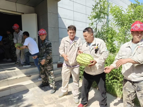 活動期間,固原基地工會深入現場,將防暑西瓜分發到職工手中,為身處高溫工作環境的職工送去陣陣清涼。同時對奮戰在一線的職工致以親切問候,并囑咐大家做好高溫防護,鼓勵大家在繁忙的工作中積極發揮勞模精神、工匠精神,為高溫季節安全生產保駕護航。