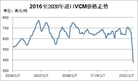 在需求增長和美國頁巖氣革命的推動下,近年來,全球乙烯行業(yè)進入新一輪擴能高峰期,供應(yīng)趨向?qū)捤,乙烯市場運行中樞下移。油價暴跌,乙烯的成本端支撐塌陷,乙烯市場加速下跌,乙烯法PVC的生產(chǎn)成本進一步下降。截至2020年4月上旬,亞洲乙烯CFR東北亞報405至415美元/噸,較年初下跌逾40%。全球VCM市場供需相對平衡,價格波動幅度較小。2018年至2020年初,亞洲乙烯CFR東北亞價格大體在650-800美元/噸之間震蕩。受油價下跌影響,VCM價格大跌,2020年4月上旬,亞洲乙烯CFR東北亞報423-425美元/噸,較年初下跌近40%。